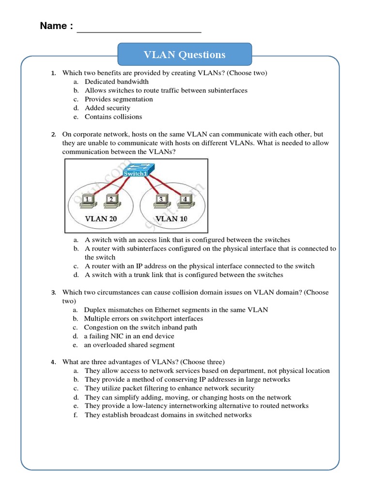 Which Two Benefits Are Provided By Creating Vlans Pdf Network Switch Router Computing